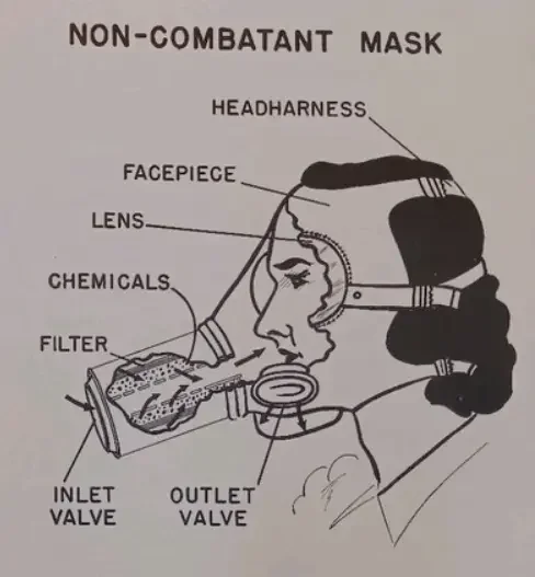 With poison and chemical weapons expected to be used by the enemy, the Office of Civilian Defense (OCD) arranged for a mass-produced non-combatant gas mask to be manufactured. The initial cost to manufacture the thousands of gas masks required the government to set aside almost $30 million.