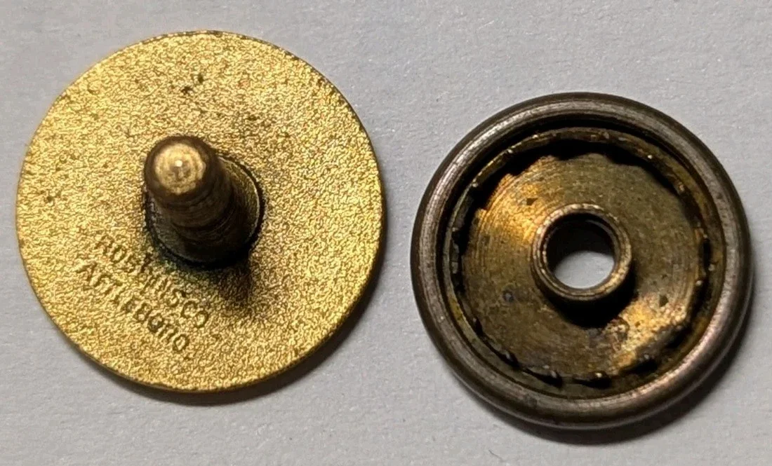 Some pin badges were made in sterling silver. The Robbins Company in Attleboro, Mass. made a large number of the screw post pin badges.