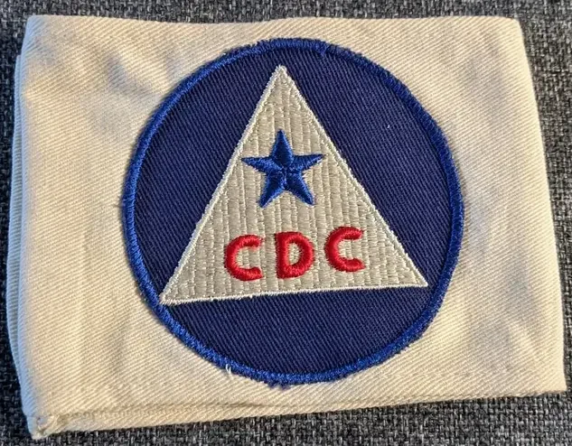 Staff Corps members would wear the identifying device of a blue five-pointed star above the letters ‘CDC’ in red within a white triangle on a blue circle.